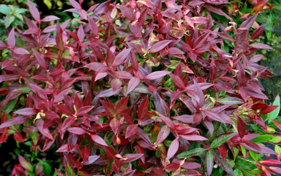 Scarletta is a glossy and graceful evergreen shrublet with scarlet-purple new growth. The narrow shiny foliage on arching stems offers an Asian aesthetic. Small white flowers in Spring, dark red in Autumn & Winter. Very forgiving of imperfect soil and conditions. Makes a great groundcover or companion to hostas, rhodies and other woodland denizens. Deer resistant and tolerant of wet areas, yet drought tolerant once established. Happiest in part shade. 2’ tall 3-4’ wide. Zones 5-9